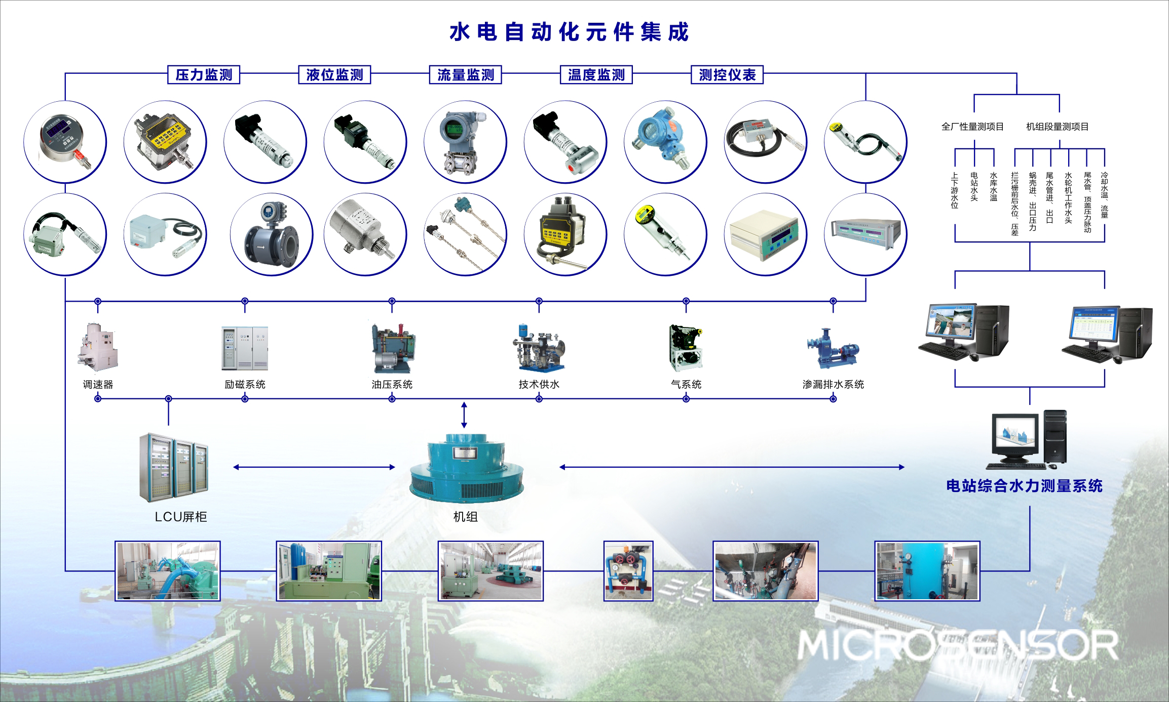 滿足各類水輪發(fā)電機(jī)組及輔機(jī)系統(tǒng)的配套安裝、監(jiān)測要求