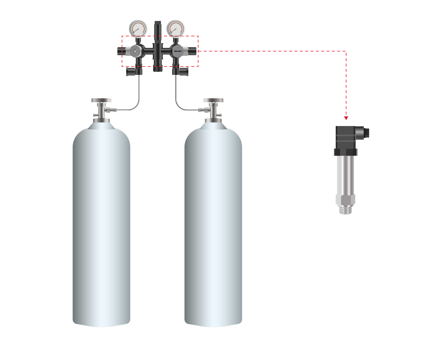 壓縮氣瓶的供氣管道與供氣管通需采用壓力變送器來監(jiān)測(cè)其壓力情況,保障氣瓶使用安全。