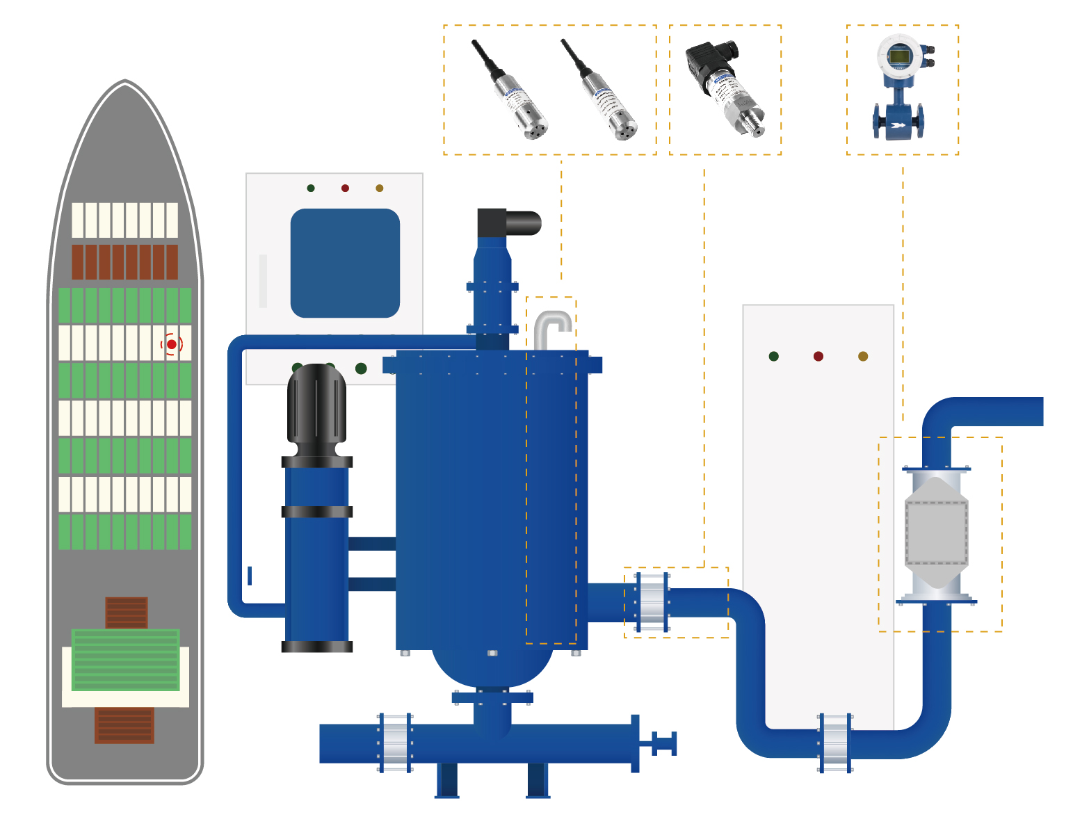 查看詳情在船舶水循環(huán)冷卻系統(tǒng)安裝壓力變送器、溫度變送器、電磁流量計(jì),保證中央冷卻器的換熱效率,實(shí)現(xiàn)最大程度的節(jié)能及海水流量的優(yōu)化控制。
