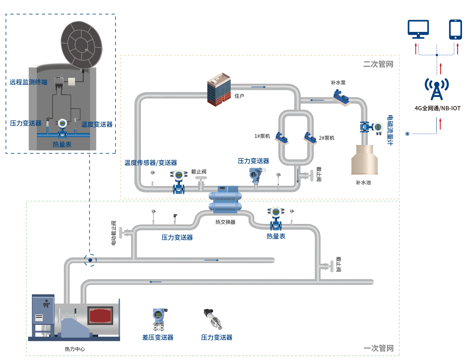 查看詳情在換熱站供熱系統(tǒng)安裝電磁流量計(jì)、超聲波流量計(jì)、液位變送器、壓力變送器等設(shè)備,實(shí)時(shí)掌握供熱管道流量、熱量、溫度、壓力等數(shù)據(jù),保障供熱站正常運(yùn)行。